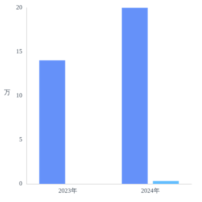2024年度培训费全口径支出为20.00万元。与2023年度相比,增加20.00万元,增长100%。其中,2024年度财政拨款支出数为20.00万元。与2023年度相比,增加20.00万元,增长100%。